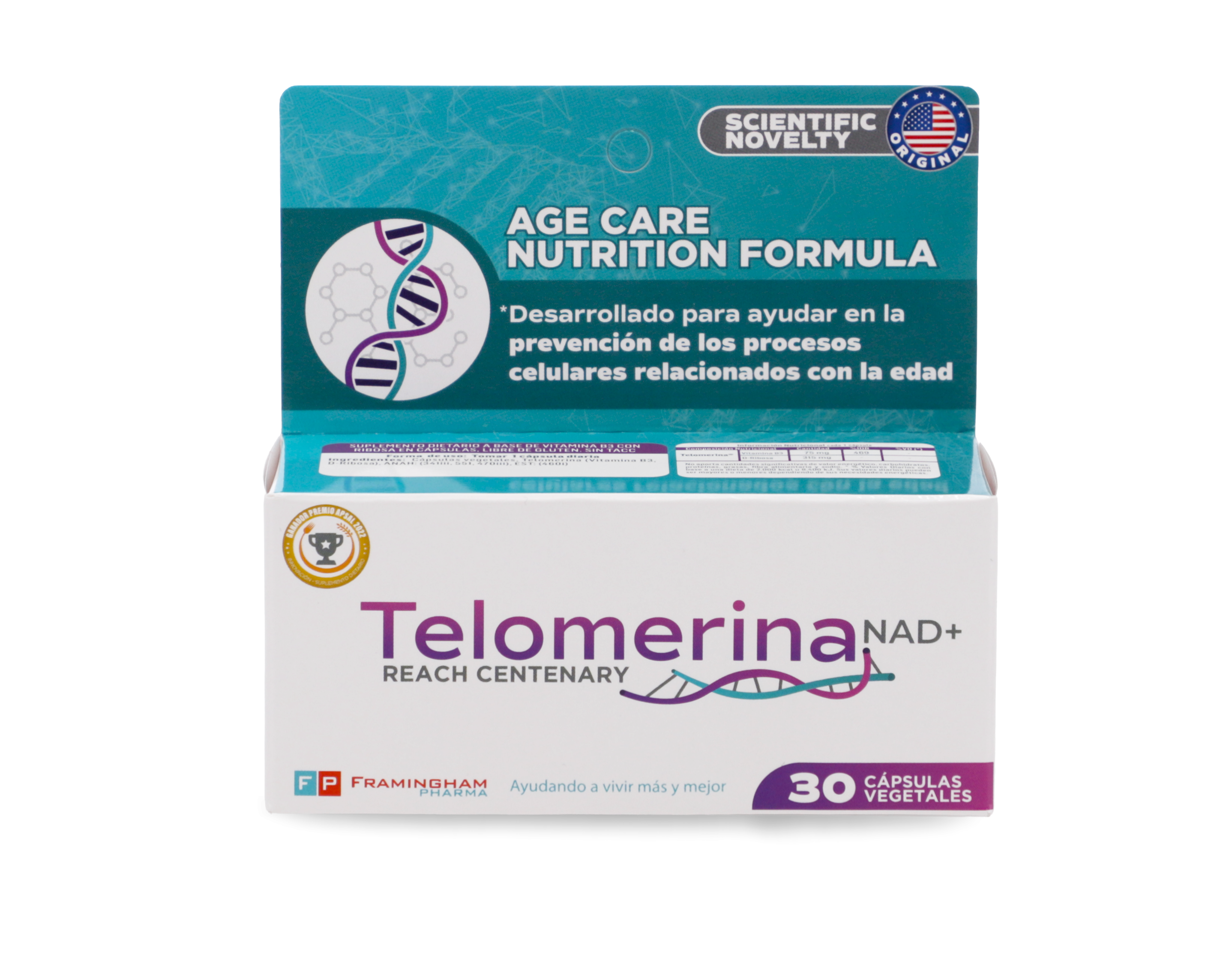 Telomerina NAD+® es un suplemento dietario con la formulación de mayor potencia y eficiencia conocida, clínicamente validada* para aumentar los niveles de NAD (Nicotinamida adenina dinucleótido) en todo el organismo.